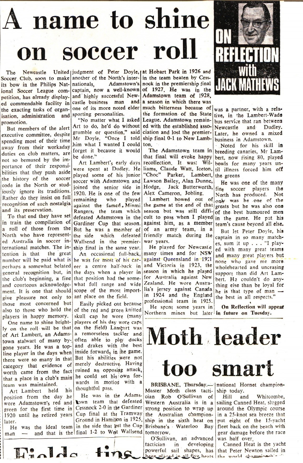 Arthur Lambert - Rosebuds. Newcastle Soccer. Article. 1980's :